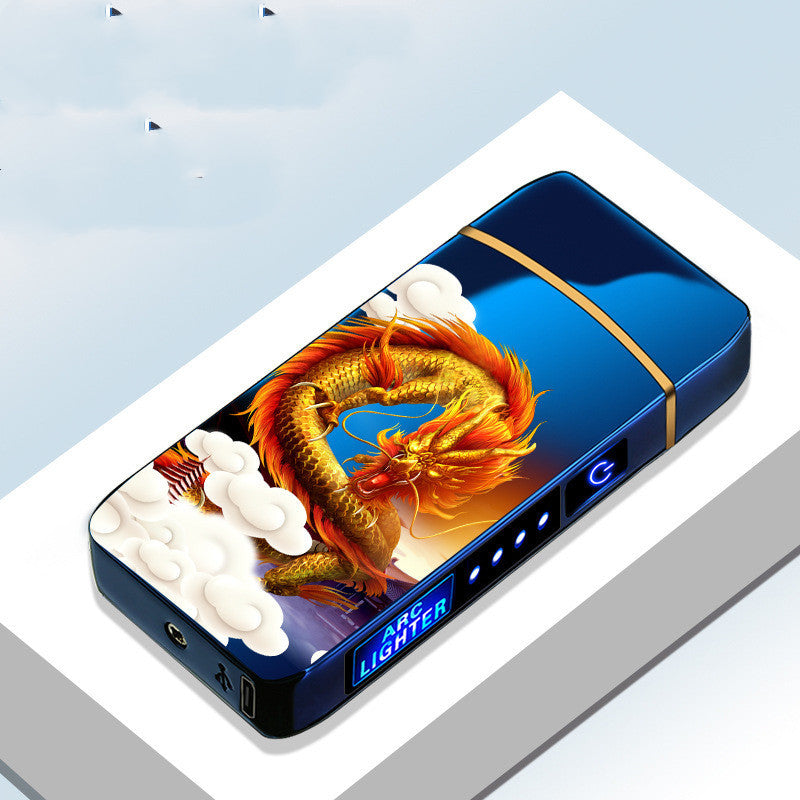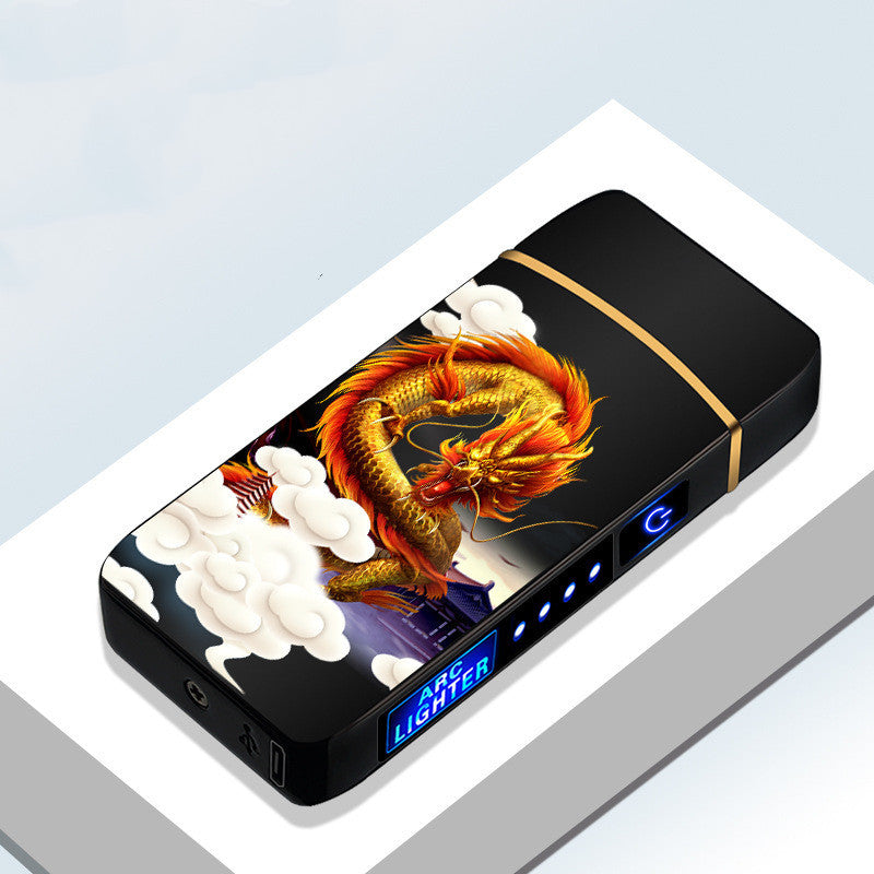 Windproof Electric Dual Lighter USB Rechargeable Flameless Plasma Pulse Cigarette Lighter Candle With LED Power Display